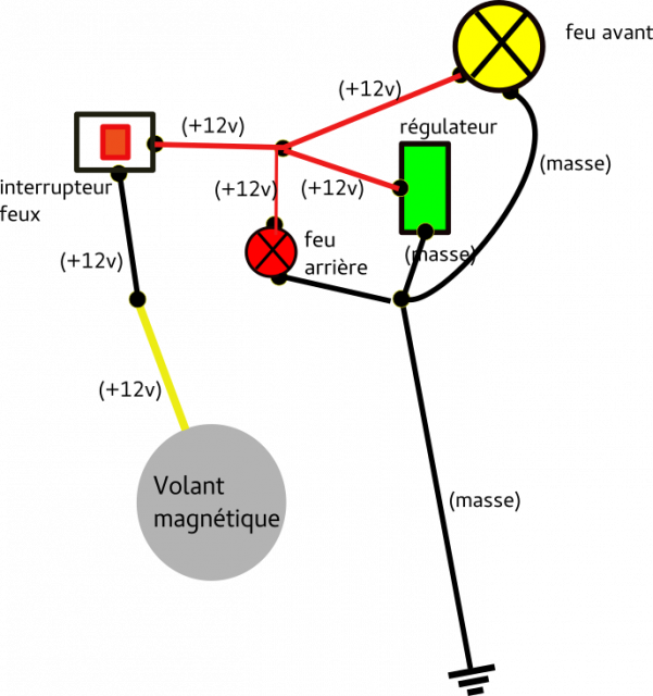 Si j'ai bien suivi vos différents posts, voici, schématiquement ce que je dois mettre en place (je n'ai pas figuré le feu stop pour le moment) :