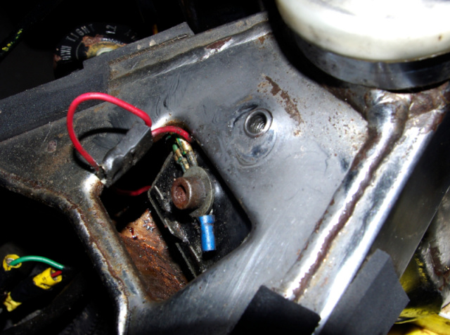 Je vais nettoyer tout çà et mettre le régulateur neuf ; celui d'origine a plusieurs pattes, l'universel n'a que deux câbles.