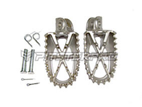 Ils étaient moitié moins cher que le matos moto et sont 2-3 mm moins large au niveau de la fixation, ce qui permet de les monter sans devoir les reprendre, les repose-pieds cross étant souvent un poil trop large.