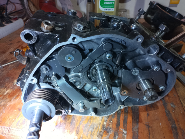 Il va te falloir enlever probablement la plaque pour accéder au joint spi. Et aussi le mécanisme de kick. Il faut que tu retires tout ce qui va gêner lors de l'ouverture des carters.