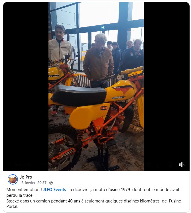 Celle-ci est la vraie moto retrouvée dernièrement, la réplique était à côté avec un moteur repeint.